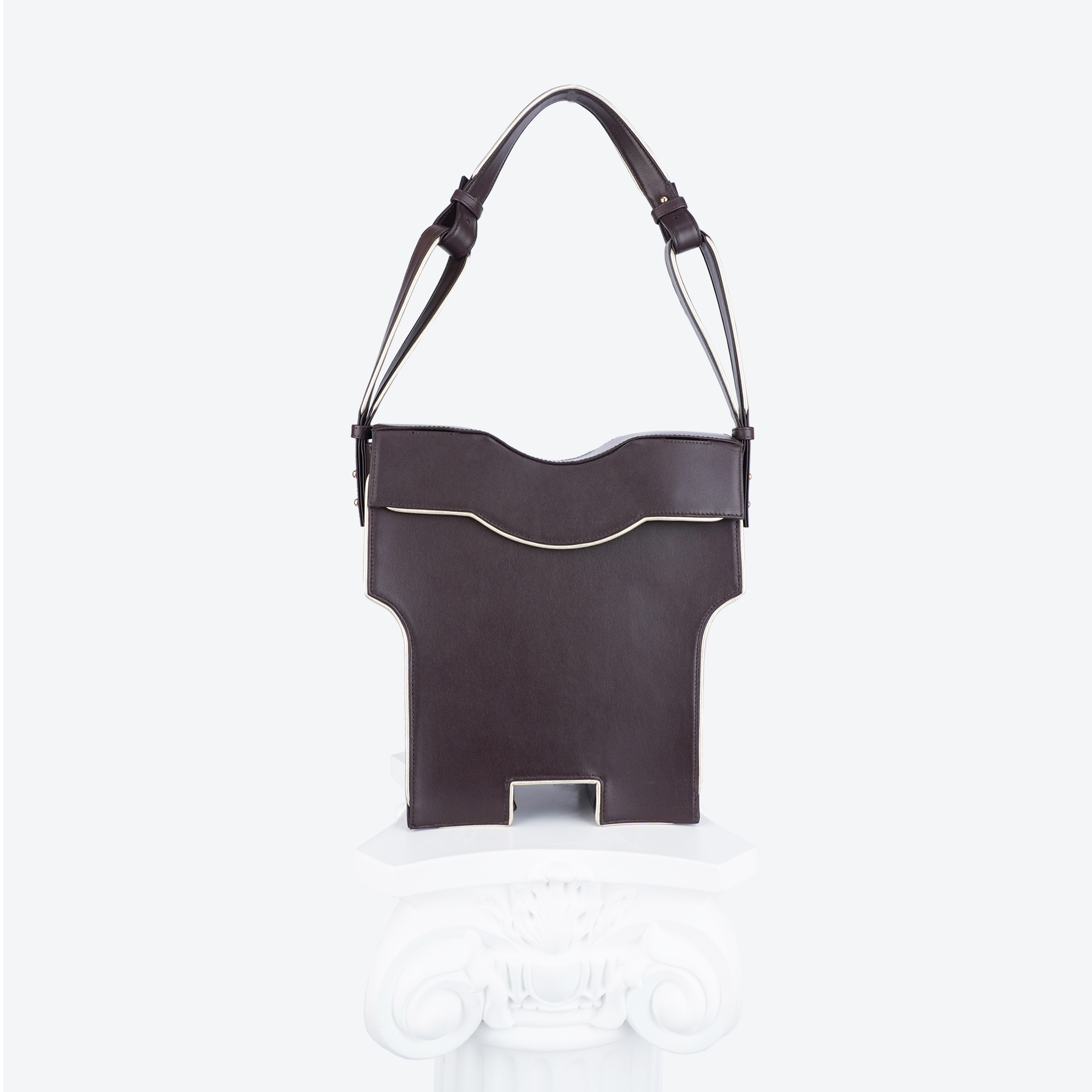 The design features a luxurious and elegant style with a structured, boxy silhouette—reflecting the strong lines and geometric form of the Eiffel Tower.
