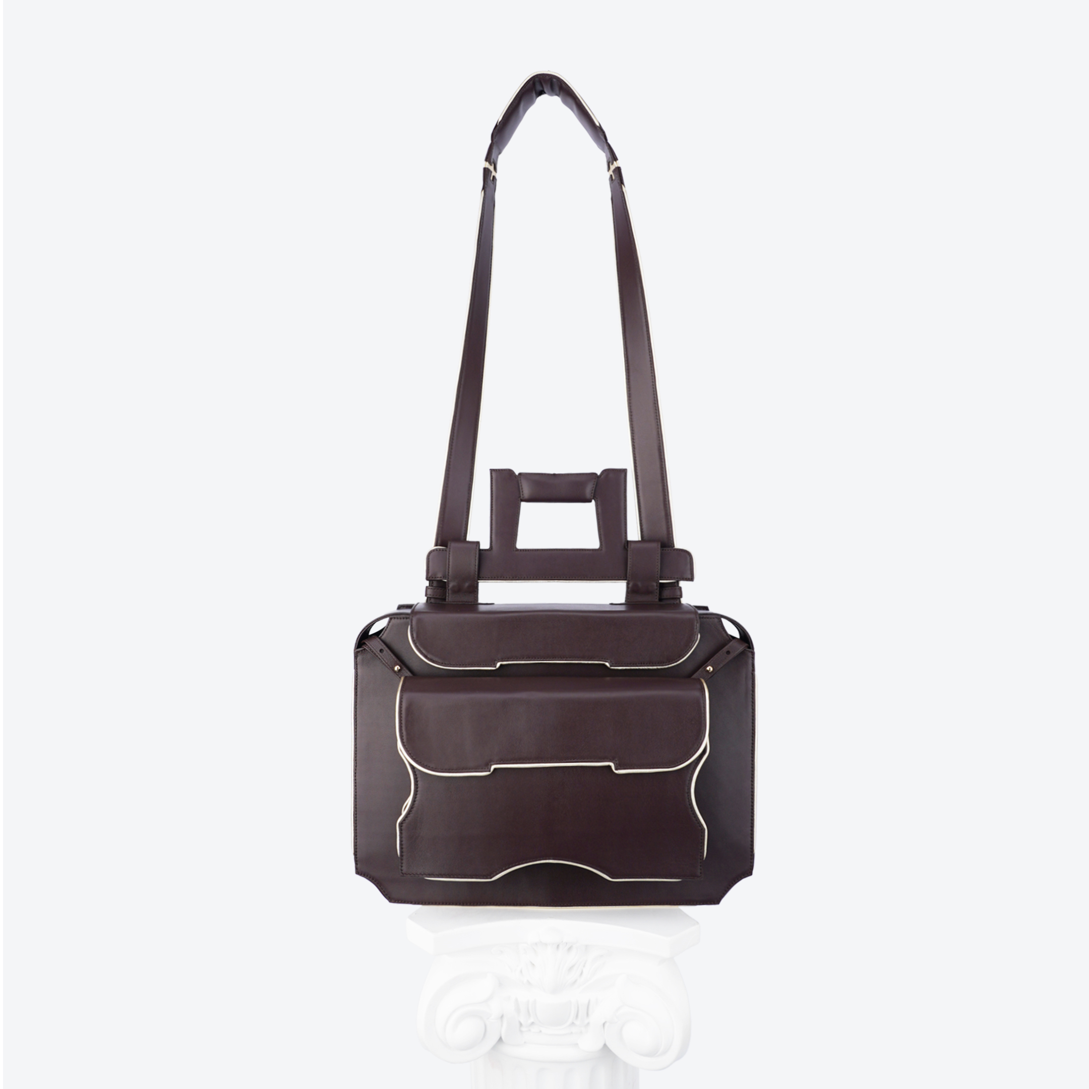 The design features a luxurious and elegant style with a structured, boxy silhouette—reflecting the strong lines and geometric form of the Eiffel Tower.