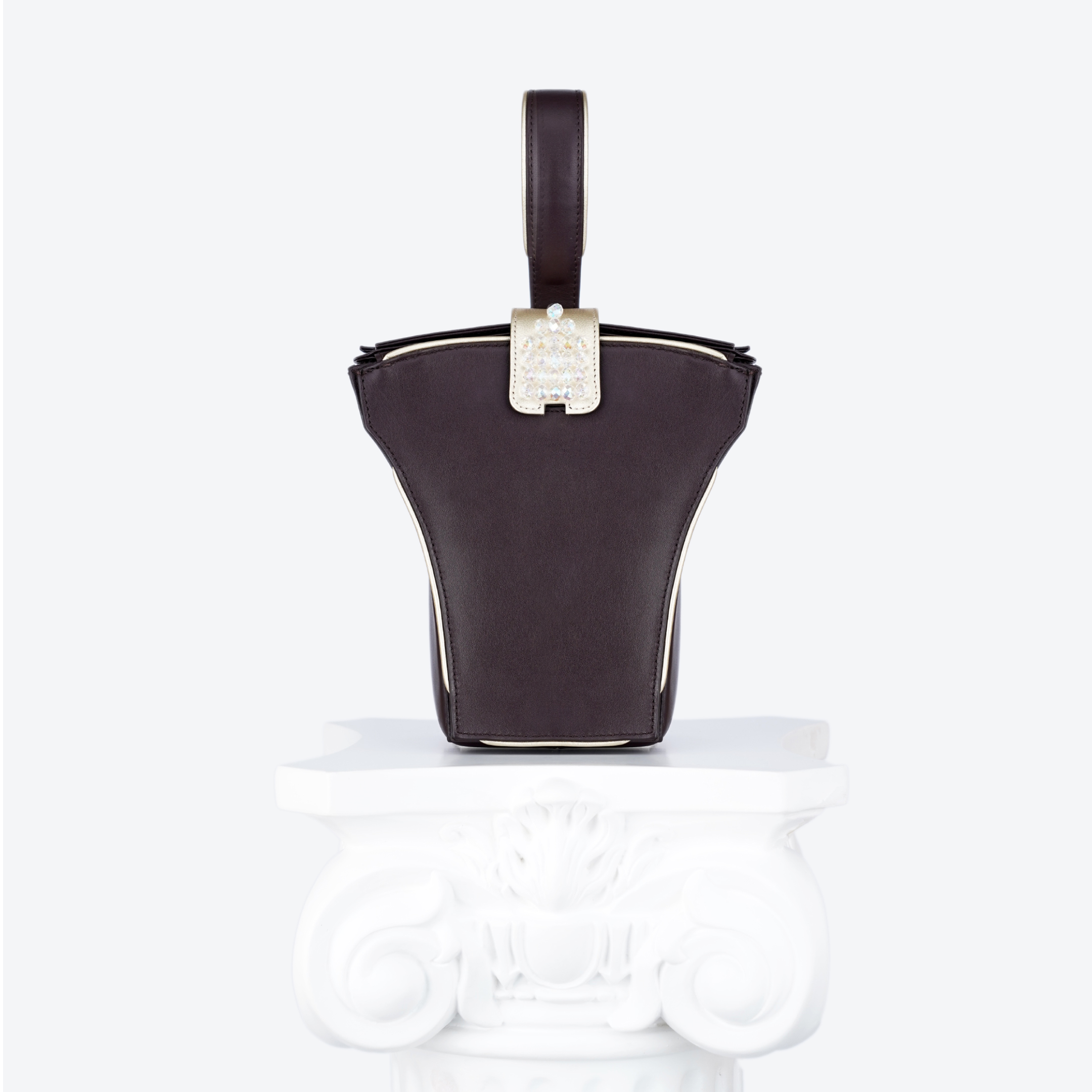 The design features a luxurious and elegant style with a structured, boxy silhouette—reflecting the strong lines and geometric form of the Eiffel Tower.